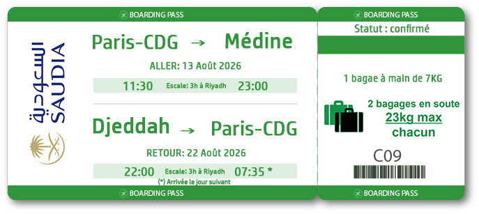 Partez en toute sérénité à la découverte des Lieux Saints de l’Islam, dans un cadre spirituel, organisé et profondément humain. De Médine à La Mecque, vivez une expérience unique de foi et de recueillement, accompagnée à chaque étape par notre équipe d’encadrants expérimentés et d’imams qualifiés.