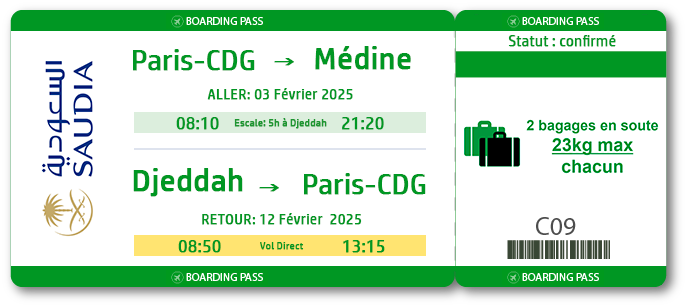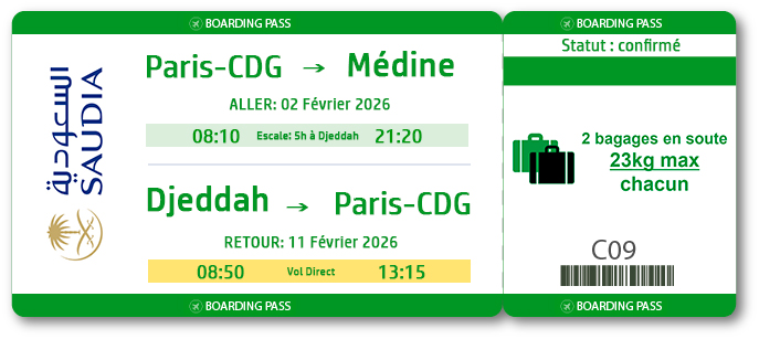 - Visites à Médine (lieux de Ouhoud, Masjid Quba)
