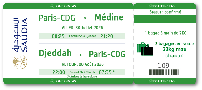 - Visites à Médine (lieux de Ouhoud, Masjid Quba)