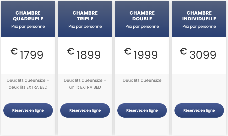 - Hébergement dans les hôtels avec petit déjeuner