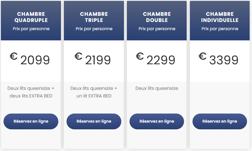 - Hébergement dans les hôtels avec petit déjeuner