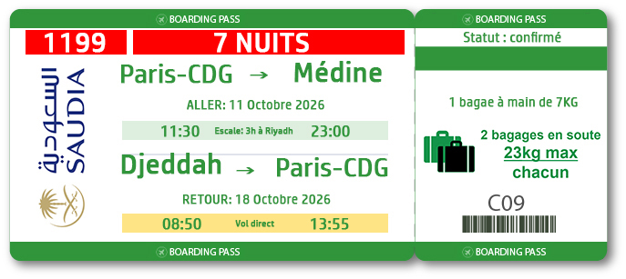 - Visites à Médine (lieux de Ouhoud, Masjid Quba)