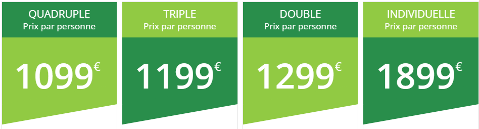 • Assurance de voyages (voir les détails)  : à partir de 90€ (par personne)