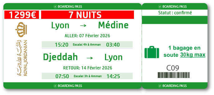 • Transfert en TGV entre Médine et Makkah : 90 € (Eco) – 130 € (Business) – Trajet de 2h15 au lieu de 6 heures en car, comprenant les billets de TGV, les transferts hôtel-gare / gare-hôtel et l’accompagnement.